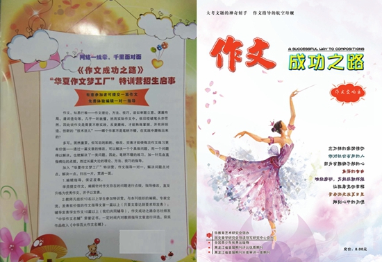 《作文成功之路》杂志是经国家新闻出版广电总局批准,由中华教育艺术研究会领办,黑龙江大庆教师进修学院主管、主办的作文教育教学类专业学术理论期刊,系“加拿大国际青少年教育家学术交流学会”重点推介汉语作文G4类教育期刊,中国文章学研究导读导写研究中心会刊黑龙江省首届期刊评比优质期刊黑龙江省首届期刊分类审评一类期刊。本刊国际标准刊号:ISSN 1001-571X,国内统一刊号:CN 23-1304/G4。高中版邮发代号:14-200,初中版邮发代号:14-338,小学版邮发代号:14-199
