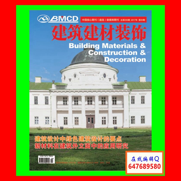 《建筑·建材·装饰》杂志征稿要求:(1)稿件应具有科学性、先进性和实用性,论点明确、论据可靠、数据准确、逻辑严谨、文字通顺。计量单位以国家法定计量单位为准;统计学符号按国家标准《统计学名词及符号》的规定书写。所有文章标题字数在20字以内。参考文献按引用的先后顺序列于文末。图片要清晰,注明图号。(2)来稿一律使用word排版且具有一定的学术水平,来稿请注明作者姓名、单位、通讯地址、联系电话及电子信箱,并保证文章版权的独立性,严禁抄袭,文责自负,请勿一稿多投,欢迎投稿!